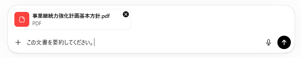 文章量の多い資料などのファイルをアップロードし、内容の要点を簡単にまとめさせます。